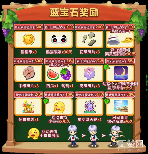 奖励一:根据您累计获得的“蓝宝石”数量,领取特别奖励!