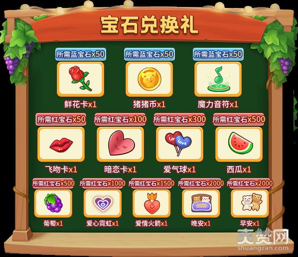 奖励二:使用“红宝石”、“蓝宝石”,可兑换不同奖励!