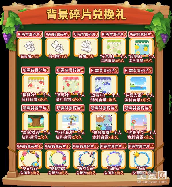 使用“背景碎片”,兑换“个人资料背景图”奖励!