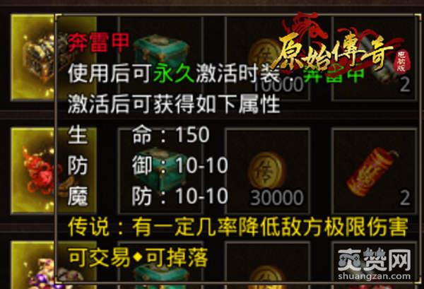 作用:使用后可永久激活时装,奔雷甲,不仅能大幅度提高生命值,还有一定的几率降低敌方的极限伤害。