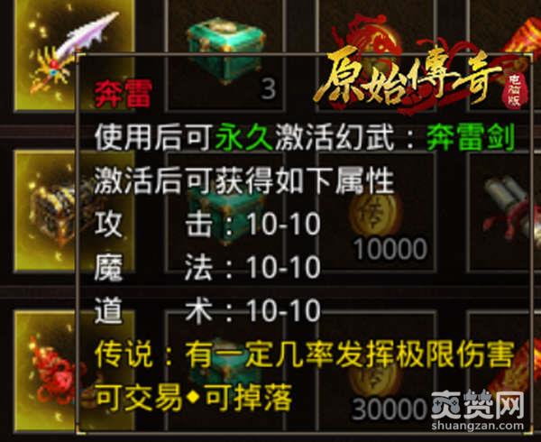 作用:使用后可永久激活幻武:奔雷剑,提高武力的同时,还有一定几率发挥极限伤害。