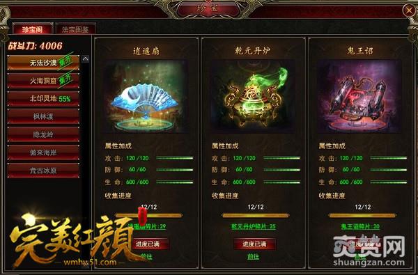 而具体到游戏中,玩家角色从游戏初期开始,便可以通过在不同野外场景当中挂机,并随机获得各类珍宝碎片的掉落。通过“珍宝”系统提交这些碎片,便可获得属性加成奖励——每类珍宝提交的数量越多,所获得的属性奖励越高,直至珍宝提交达到上限位置;而地图等级越高,所获珍宝的提交上限便越高,而最终集齐时能够从中获得的属性加成也就越高!