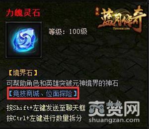 b. 力魄灵石--可在竞技商城中消耗一定竞技点获得,或进入上古结界通过“位面探险”概率获得