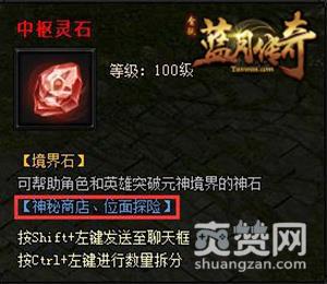 c. 中枢灵石--可在神秘商店中购买获得,或进入上古结界通过“位面探险”概率获得