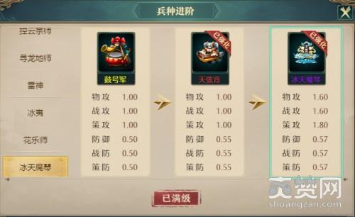 除了兵种的转职,还可以进阶强化兵种,强化需要材料,根据你想要的兵种强化所需要的材料进阶,强化的材料可以去精英副本中获取,也可以购买,一步步强化到最强的兵种,到一定等级还可以挂帅出征,有一支精锐部队,让你的部队越来越强大,各位主公们,一定要记住各兵种不同等级的属性加成也是不一样,兵种之间也是相互克制,还有不同站位的兵种可以说有着完全不同的战术价值,赶快去战火纷飞的三国战场上了留下了属于自己的铁血战史吧!