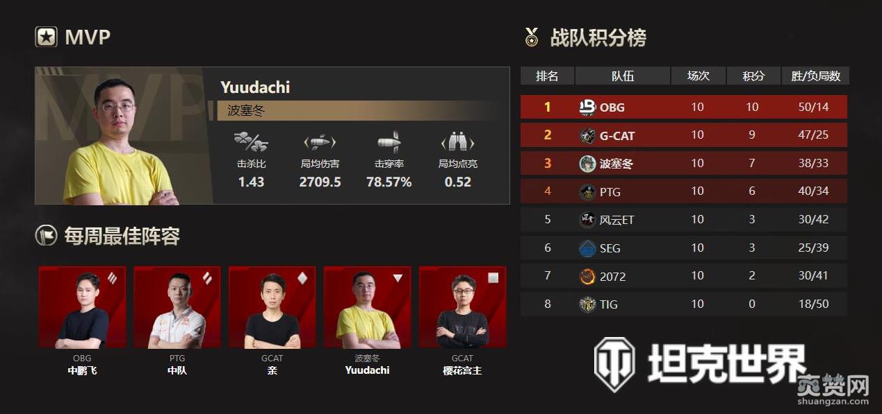 上周比赛中,G-CAT凭借强势的控场,以5:1先后击败了PTG与风云ET,逐渐找回状态的波塞冬也先后力克风云ET与TIG,两支战队本周均以两战全胜的战绩居于积分榜第二、三位。而愈战愈勇的2072在本周的比赛中也给我们带来了很大的惊喜!他们在面对OBG的战斗中先是连下三城,前五局战成4:1,率先拿下三个赛点!而OBG同样也展现出了顶尖强队的实力,顶住压力连追三局,把比赛拖进了决胜局锡城,并最终依靠其强大的心态与老辣的战术,逐步蚕食掉了对方的防御阵型,拿下了最终胜利。