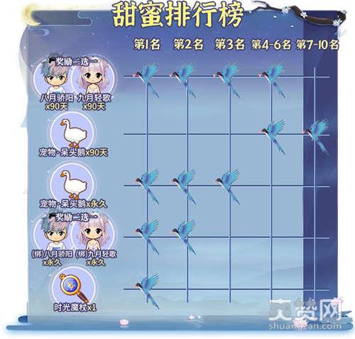 奖励三:玩家累计消费的金币越多,在“甜蜜排行榜”上的名次越高!活动结束后,根据您的排名,获得对应奖励。