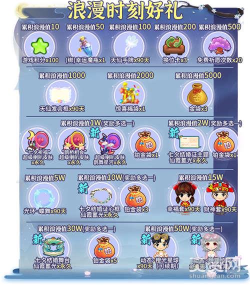 并且,根据您累计获得的“浪漫值”,解锁特别奖励,每当您领取所有奖励后,可重新累计“浪漫值”并领取奖励!
