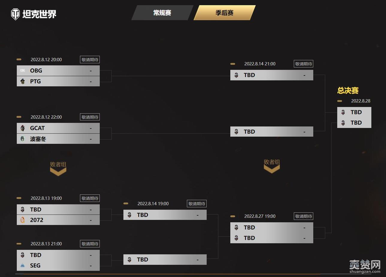 经历了两个月的角逐,六支战队已成功晋级《坦克世界》WCL夏季赛季后赛阶段。季后赛为双败赛制,常规赛积分前四的队伍将直接进入胜者组,并在首先本周五进行两场争夺胜者组A1与胜者组A2优胜名额的比赛。