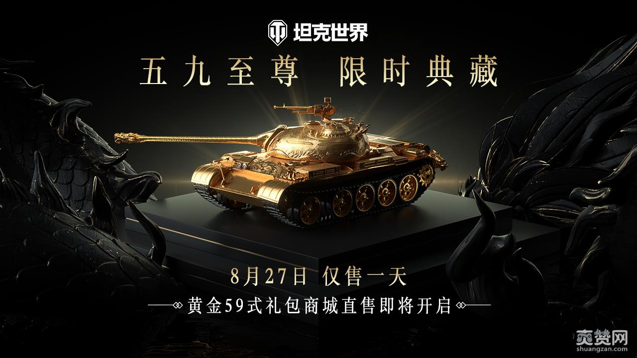 各位指挥官, C系VIII级中型坦克——黄金59式,将在8月27日0:00-23:59限时上架特惠商城。这是一辆十分特殊的金币坦克,它能够在战斗中获得更高的基础经验,以帮助您更好的扩充战备,抓紧机会,入手金龙!