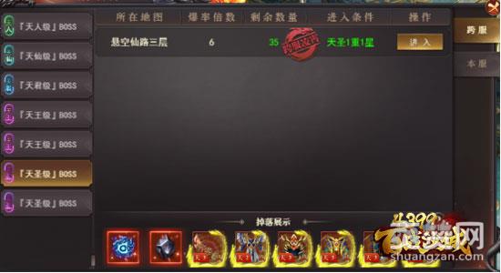 悬空仙路三层:所有BOSS都有概率掉落魂器和魂器材料,优先击杀守关BOSS天月法老、火焰魔尊,守关BOSS比该地图其它BOSS更高概率掉落魂器和魂器材料、60级装备及3阶天界装备;