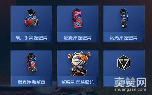 蟹蟹雷系列投掷物包括破片手雷、燃烧弹、闪光弹、烟雾弹等。