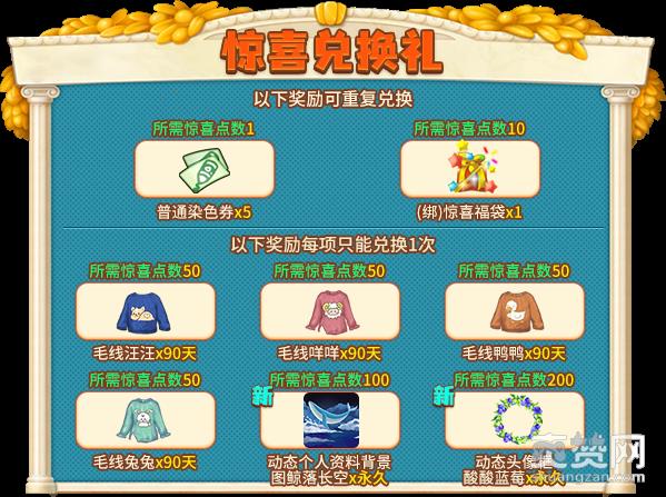 3、绑定道具只能兑换非绑定道具一半的惊喜值;