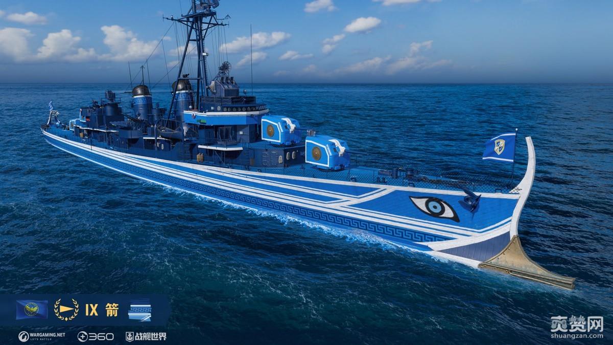 同时,箭还还配备了一部装填时间较短的五联装鱼雷发射管,但是发射角度略有不足,需要更好的瞄准和预测对方走位。隐蔽是箭的优势之一,无论是海面隐蔽还是对空隐蔽都有不错的表现。除此之外,箭还能使用烟幕扩散时间较长的增强的发烟器,引擎增压和防御型对空火力也在其消耗栏位中。