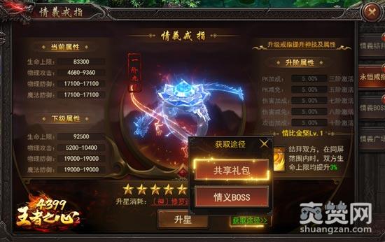 永恒戒指:通过双人充值礼包、击杀共享boss,升级永恒戒指可额外获取神技和特殊属性。