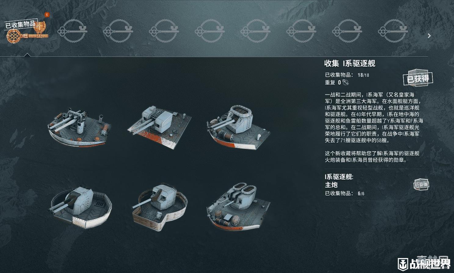 《战舰世界》军械库内,重新上架了I系驱逐舰补给箱,开启补给箱可以获得I系驱逐舰收藏元素。收藏围绕I系驱逐舰火力配置等内容展开,帮助舰长们更好的了解其背后的故事。完成整个收藏后,可以获得VI级驱逐舰狮子,还可以在I系巡洋舰、驱逐舰和战列舰上安装第二面旗帜。