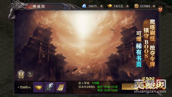 进入神威狱后默认在1层,击杀场景怪物有几率掉落神威令牌。