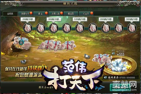 你是不是也想成为土豪?那么就到大黑游戏《范伟打天下》过一把富豪瘾吧!各种丰富活动,将为你带来丰厚财富,让你瞬间赚得盆满钵盈。
