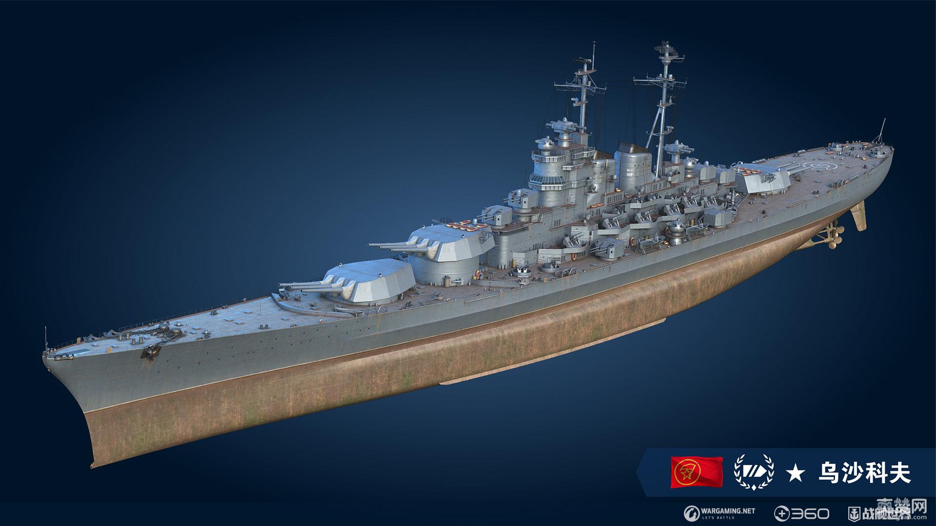 本次拍卖中的另一艘超级战舰是乌沙科夫海军上将,这是一艘为前线而存在的超级战列舰。它的主要武器是9门457毫米主炮,短距离射击的准度良好,但射速较低。众多副炮的存在也能够在近距离中补充相当多的火力输出。其独有的“作战指令”在启用后,可以增加主炮射程并减少炮弹的最大误差。结合其不错的生命值和强大的装甲防护,乌沙科夫海军上将将成为对局中重要的战术支撑点。