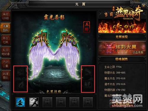 光翼能够为角色带来生命上限、物理攻击、魔法攻击、道术攻击、物理防御以及魔法防御属性的加成效果。光翼的升阶需要消耗足够的羽毛才行,光翼等级越高,升阶所需要的羽毛也会越多。