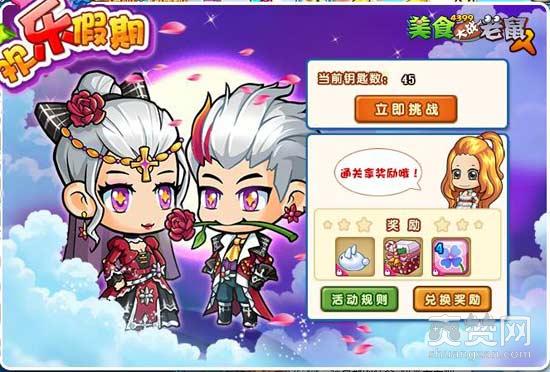 消耗欢乐假期入场券进入副本,通关后可获得冰冰兔与新年欢乐宝箱,累计冰冰兔可兑换丰富好礼。