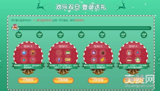 活动期间可在双旦专题页面进行签到,累计签到1天、3天、5天、7天可领取对应礼包。