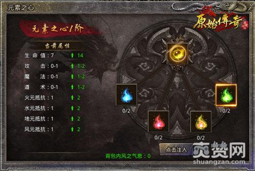 注入四种元素材料,即可提升元素之心等阶,并且获得属性提升。玩家可以在洪荒装备的界面处,查看元素之心的属性。