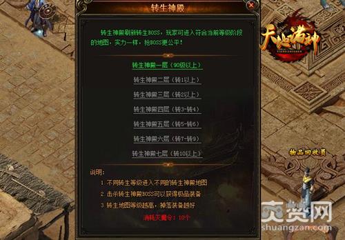 90级以上的转生神殿一层,转1以上的转生二层,转3-转4的转生四层......在4366《天地诸神》的传奇大陆上,转生地图等级越高,对于英雄的升级要求也就越高,不过,相对应的,在更高的地图上,掉落的装备也会越好。所以,为了那些千金难求的好资源,大伙们努力加把劲吧!
