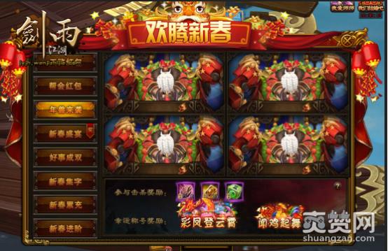 金鸡报喜,好事成双!在玩机之家《剑雨江湖》新春盛典活动期间,每天指定的如答题活动,罗摩副本,护送活动等皆可以获得双倍的奖励,超级福利送不停哦!除此以外,我们还为大家准备了新春集字,新春累冲,新春进阶等各类活动,让各位大侠整个春节假期嗨到根本停不下来!