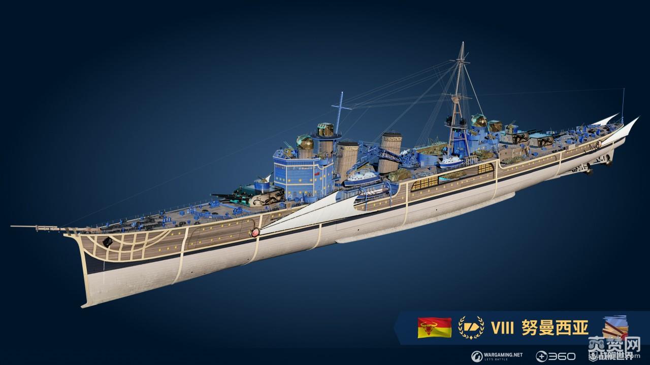 努曼西亚是一艘全新的巡洋舰,装备了七门203毫米口径主炮。舰船本身拥有不错的隐蔽和机动,“替代射击”模式可以在短时间内提供爆发式的输出,但也会导致后续装填时间变长,出现一段时间的输出真空期。现在入手努曼西亚后,还能够解锁一个持续30天的特殊作战任务。 操纵努曼西亚完成的每场战斗都能获得额外200%战舰经验、全局经验和指挥官经验。