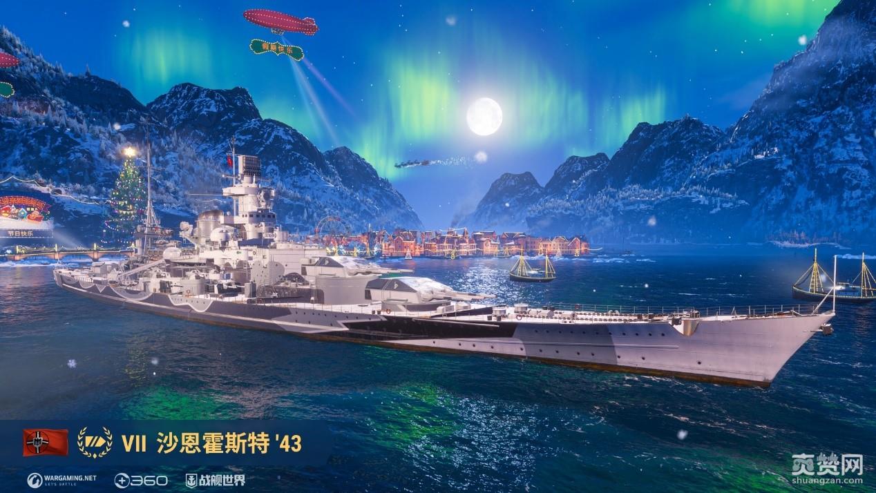 圣诞城的假日活动,是12.11版本全新推出的内容。舰长们可以通过完成每日任务和每周任务推进阶段,这些任务的要求都是在对局中获得基础经验,因此难度很低。基础进度共分为20个阶段,其中第十个阶段的奖励,就是VII级战列舰沙恩霍斯特 '43。舰长们只需要按照自己的习惯进行游戏,就可以轻松获得这艘战舰。
