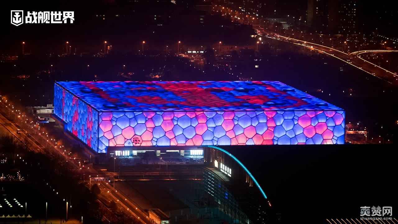 12月8日晚,北京国际游泳中心(水立方)的蓝色外墙,被“12.8”、“WOWS”的字样所点亮。这是大型端游《战舰世界》(英文缩写:WOWS)为所有游戏玩家献上的厚礼。游戏知名主播、视频创作者以及玩家们,通过线下观景、线上直播等方式,共同分享了本次点亮仪式的快乐。