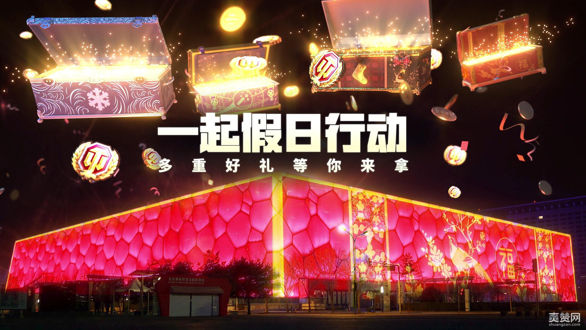 12月8日晚,北京地标建筑国家游泳中心“水立方”亮起了游戏巨型Logo,与玩家共庆假日行动!