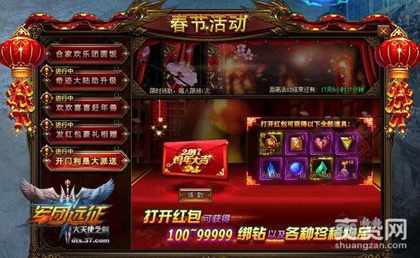 又到了一年一度晒各种公司年会的时候,今年你是否收获颇丰?还是大奖如雨点般打来,你却一一躲过,不得不怀疑自己参加了假年会!没有获奖的朋友不要沮丧,37《大天使之剑》准备了一大波丰厚的奖励等你来领取!还记得去年官网制定的各种丰厚福利吗?让玩家在过年期间玩得不亦乐乎,领奖领到手抽筋,那么今年游戏又会呈现什么样的奖励?请跟随小编的脚步一探究竟!