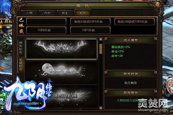 在偌大江湖中,凡是拥有一定称号之辈,其实力和在武林中的威望都是毋庸置疑的。在大黑《九阴绝学》中,只要你达成一定的条件,便也可获得响亮的称号。当你得到并佩戴称号后,即使身处人群之中,也将成为焦点人物,并且称号还能够为你带来一定的战斗属性加成,让你的强大之力如虎添翼。