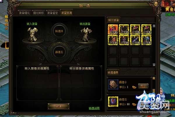 因为每件装备只能鉴定一次,装备又可以拥有多条灵魂属性,所以转魂就是我们的强化属性的选择。玩家可以将其它装备上好的属性,通过转魂移动到穿戴装备上。装备转魂需要部位相同,门派并不限定,转魂失败则创带装备的灵魂属性消失。对于不好的属性,玩家可以用镇魂令移除,消耗镇魂石则可以保证无论移魂是否失败,灵魂属性不消失。