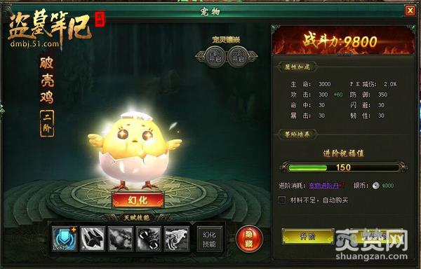 在《盗墓笔记》游戏中,小黄鸡不再只是小哥内裤上的印花图案,研发大大们赋予了它更多更生动的形象!从还是一颗蛋开始,它就将陪伴在玩家身边,卖萌逗趣,形影不离。宠物的成长离不开主人的悉心照料,除了日常的投食铲屎外,陪伴玩耍也是必不可少滴~值得注意的是,前期稳定成长的小黄鸡,在进阶到四阶后,将会在一条神奇的cos不归路上越走越远……具体会变成什么样子,还是需要进入游戏才能知道咯~