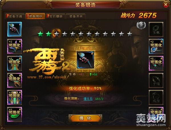接下来便要说到装备强化的问题,消耗【强化石】,可以对装备进行升星,强化成功则点亮星星,相应属性获得提升,但37《西游伏妖篇》的玩家也要注意,强化也有成功率,所以如果一直强化不成功的话,不妨过一阵子或者隔天再尝试,这样可以减少损失哦!