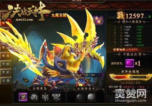 目前小编才得到四阶的天妖穷奇,战力增加了20527,伤害加成多了2个百分点。身为51《决战武林》VIP,进阶之后还返还了部分进阶石,这令小编又有了更多升阶的机会。返还的进阶石对于提升下一级而言还是很难,51《决战武林》从4阶升级到5阶至少需要220个坐骑进阶石,归根到底还是得多攒进阶石。骑乘坐骑时可正常施放技能战斗,在骑战兵器解锁后还可以使用骑战技能。