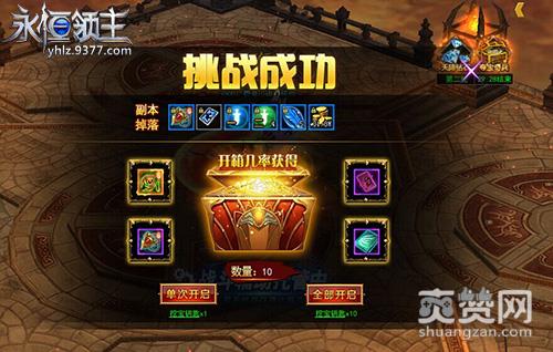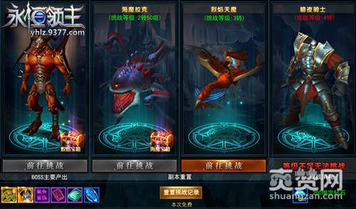 暴揍BOSS,笑纳好礼!9377《永恒领主》之中的个人BOSS被击杀之后,有几率掉落橙色品质装备、怪物卡片碎片、坐骑技能书、翅膀技能书以及翅膀进阶石等稀有的装备材料道具。而如果领主们想要再次挑战已经通关的BOSS关卡,必须进行关卡重置,每天都有1次免费重置的机会。