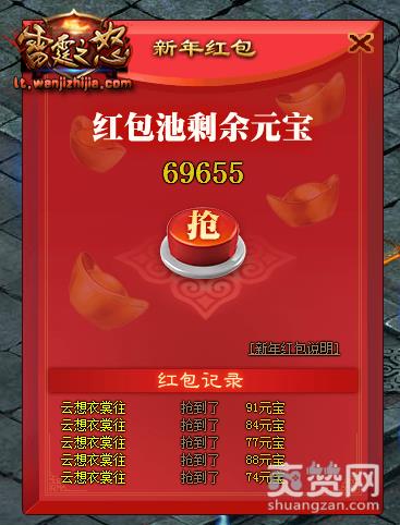 新年赢大礼,全民抢红包!过年了,当然少不了拿红包啦,在玩机之家《雷霆之怒》新春盛典活动期间,我们特意为所有勇士们准备的海量的红包哦,活动期间每天14:30和20:40系统向红包池投入20000与30000元宝哦,各位勇士们赶紧动起来吧,手慢无手快有,抢到多少是多少哦。不过小编在这里温馨提醒,想要有收获可是先要有付出的呢,需要当天充值10元或以上才能参与抢红包的活动哟。