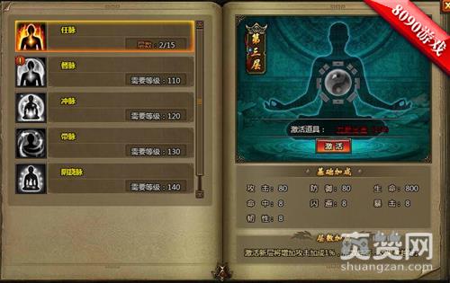被动技能在游戏中一共分为任脉、督脉、冲脉、带脉以及阴跷脉,当大家等级达到100级的时候就会开放被动技能了哦,大家每增加10级就会自动解锁一个被动技能并且还会获得1%的对应效果的加成哦。