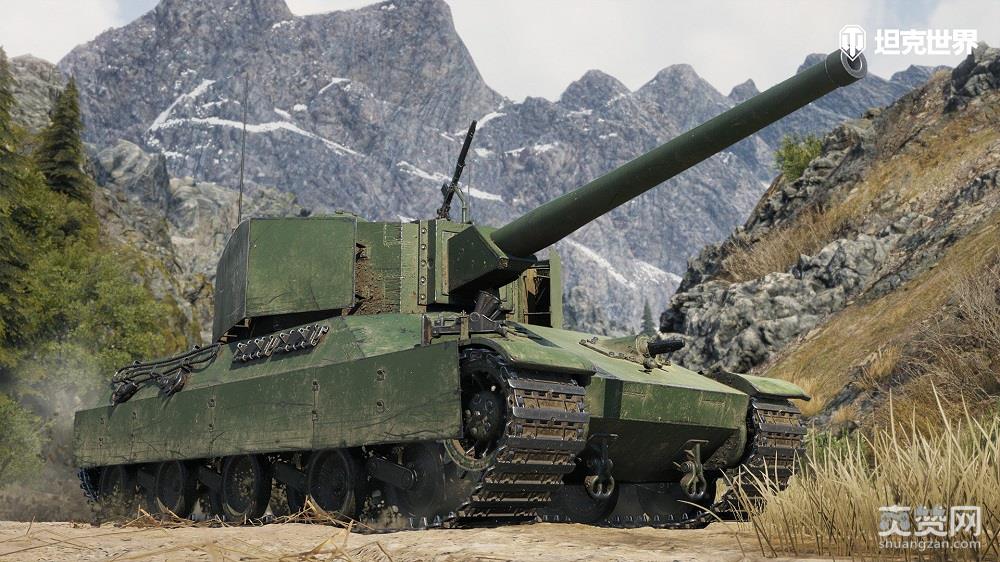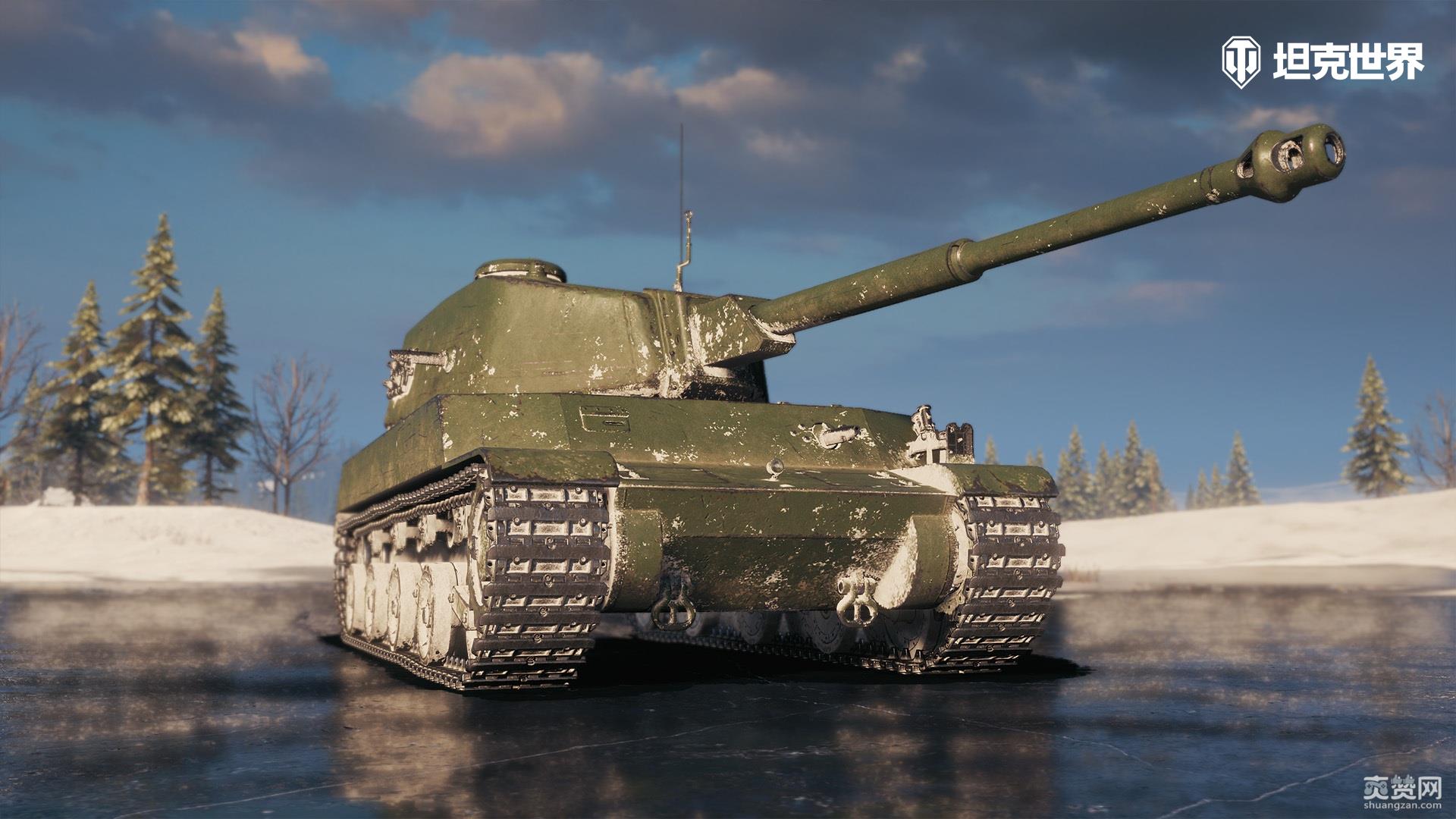 稳坐研发分支顶端的是试验型重战车——这辆67吨重的大块头配备了火炮冷却系统、液气悬挂装置,同时还拥有坚固的炮塔和稍有不足的车体装甲。17.5马力/吨的单位功率提供了足够的机动性,使该坦克能快速抵达不规则地形区域,占领有利点位。一旦就位,其液气悬挂装置就会自动激活,将最大火炮俯角从-7度加强至-12度。凭借400点的平均单发损伤和8.8秒的基础装填时间,该坦克能造成可观的平均每分钟损伤。或者,您也可以占据远离敌人的后坡,略微牺牲一些平均每分钟损伤,进行精准狙击——火炮冷却后的基础100米精度为0.28米。