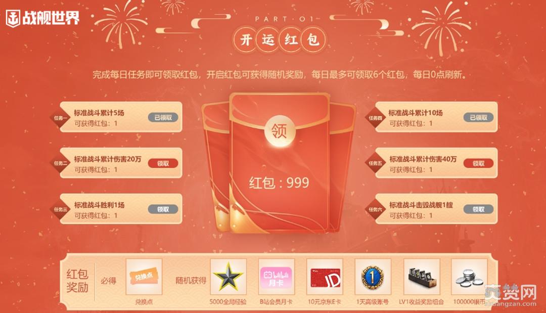 守岁迎好运,新春开红包,《战舰世界》新春系列活动即将开启,还有大量内容更新将在春节期间与舰长们见面。2月4日开始,完成指定阶段任务,即可领取红包,收获各种游戏道具奖励。参与赏金狩猎活动,还能够完成限定活动成就!