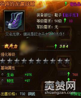 卓越的龙渊战靴是50级赵子龙的鞋子装备,需要4个橙装碎片兑换