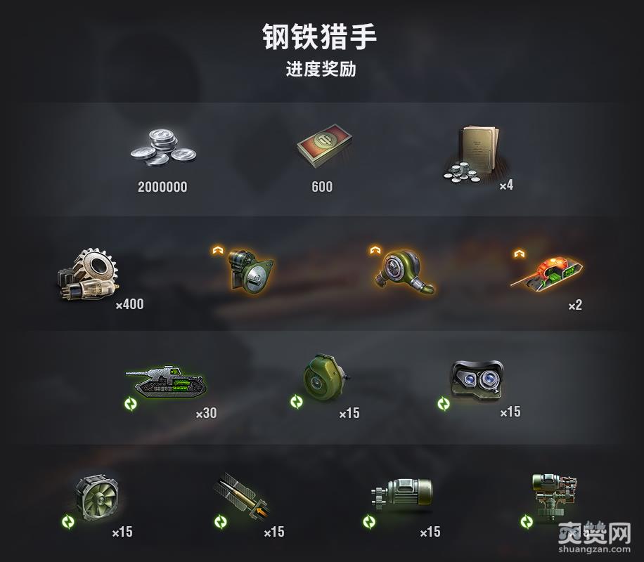 在钢铁猎手战斗中表现良好、完成活动专属的每日任务,均可获得进度点数和钢铁印章。点数可用来推进进度,完成每个阶段后就能获得各种奖励。