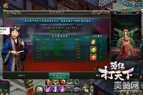 大黑《范伟打天下》不仅为玩家带来神秘的江湖秘境、多种强化玩法,还为玩家打造了趣味的定时活动。玩家每天可以多次参与现金猜破头活动,猜对数字就能获得强化石,还有可能获得人民币奖励。每逢整点活动期间占据王座的王家可以独享50人民币,还在等什么,快来参加吧!