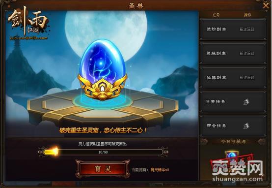 缘来缘去命注定,圣灵仙宠伴终生!无极殿中有一孕育百年的“圣兽蛋”近来频有异动,似有灵物即将破壳而出。师门将此宝物交托于你,望你悉心照顾,终有一日能从中结得仙缘。在玩机之家《剑雨江湖》中,如果各位大虾们想要获得圣兽,那么得先完成108级主线任务后对圣兽蛋进行“育灵”可获得一定灵力值,育灵成功后,将获得圣兽哦,而且从圣兽蛋中孕育出圣兽后,将有5种形态的圣兽任君挑选!它们能力相同,外形不一,挑选初始1只圣兽后,还可通过升级圣兽逐步获得其余多只呢!