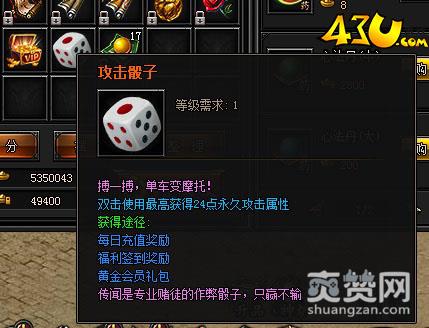 玩家若想获得这个攻击骰子,一共有三种方法,即每日的充值奖励、福利签到奖励和黄金会员礼包,双击使用最高可获得24点的永久攻击属性哦,这奖励,可是足足的呢!