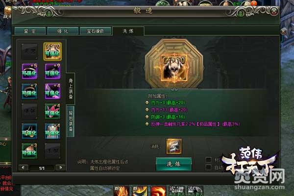 装备的附加属性越多装备的品质越好,对于战力的加成也越多。装备的附加属性可以进行洗练,洗练装备需要消耗装备洗练石,每次洗练都有几率洗出极品橙色的附加装备属性,装备洗练石可以在商城内部购买。洗练出橙色极品属性之后该属性会自动锁定,附加属性可以洗出多条橙属性。